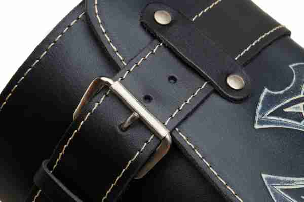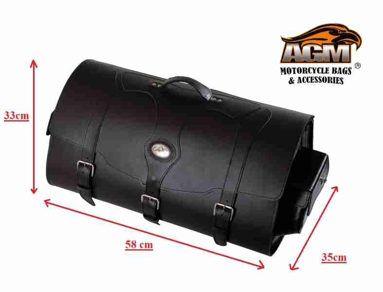 The roller is attached with leather straps, available in a set, which can be mounted vertically or horizontally. The roller can be mounted in many places on your motorcycle: to the handlebar, shin, above the lamp, under the lamp or to the motorcycle frame. If you want, you can also mount the roller to the backrest ("sissi bar") or to the trunk - generally wherever you can attach it with two leather straps. Additionally, it can be attached to the side of the motorcycle as a side bag. In the production of the medium roll, stainless steel rivets were used to secure all components. The roll skin is already impregnated. However, if you want to use the waterproofing agent yourself, we recommend skin care paste with the addition of beeswax.