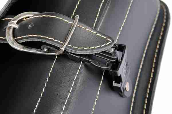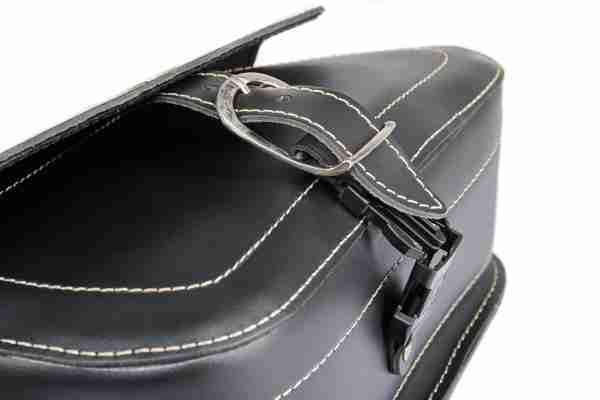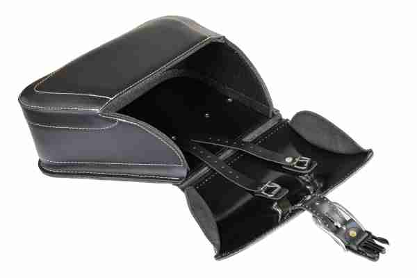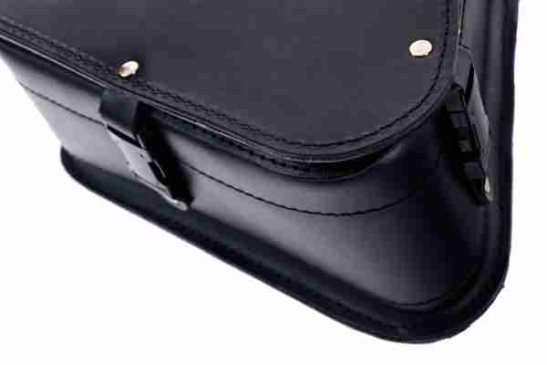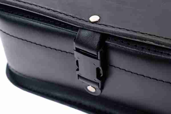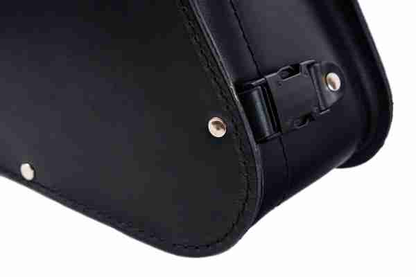The bag is not only made of high quality leather but is also extremely well thought out in technical and practical terms for the user. underneath, fast opening with a plastic buckle is hidden. Buckles are made of durable plastic and in practice they work much better than metal ones! They do not rust, are lighter and retain their function in contact with water! Saddlebag straps are included. Inside the bag there is an additional small pocket closed with velcro, in which you can hide e.g. documents. The bag has a fashionable appearance and the highest quality finish for each element. Simply "biker's Design"! From Bikers to Bikers! Indina Scout can be attached to the motorcycle swingarm from the left. The back of the bag is made of plastic (can be drilled in it and fastened with screws) You can also attach the bag to the rear mudguard - using screws or a special fastening system - which is not available in the lock.