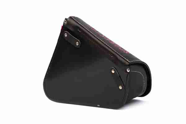 Timeless leather solo bag with attached to the frame with leather straps. Bags are created with passion, often on individual orders. The idea of the creators is to embellish the motorcycle and not put on a piece of hanging leather - in other words artistic jewelry for the motorcycle. The bag is not only made of high quality leather but is also extremely well thought out in technical and practical terms for the user. Underneath, quick opening with a plastic buckle is hidden. The buckles are made of durable plastic and in practice they work much better than metal ones! They do not rust, are lighter and retain their function in contact with water! Saddlebag straps are included. Inside the bag there is an additional small pocket closed with velcro, in which you can hide e.g. documents. The bag has a fashionable appearance and the highest quality finish for each element. Just "biker's Design"! From Bikers to Bikers!