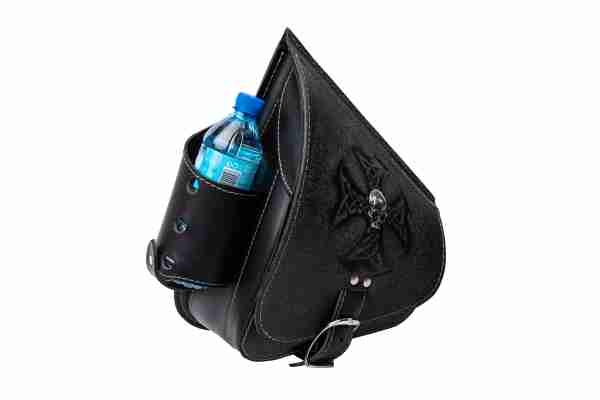 A timeless leather solo bag with a bottle holder attached to the frame with leather straps. Bags are created with passion, often on individual orders. The idea of the creators is to embellish the motorcycle and not put on a piece of hanging leather - in other words artistic jewelry for the motorcycle. The bag is not only made of high quality leather but is also extremely well thought out in technical and practical terms for the user. The side flaps on the flap additionally prevent water from getting inside the pouch - which makes it almost waterproof. "Oldschool Design" thanks to a leather strap with a metal buckle, stainless steel but hidden underneath is a quick opening using a plastic buckle. The buckles are made of durable plastic and in practice they work much better than metal ones! They do not rust, are lighter and retain their function in contact with water! Saddlebag straps are included. Inside the bag there is an additional small pocket closed with velcro, in which you can hide e.g. documents. The bag has a fashionable appearance and the highest quality finish for each element. Just "biker's Design"! From Bikers to Bikers!
